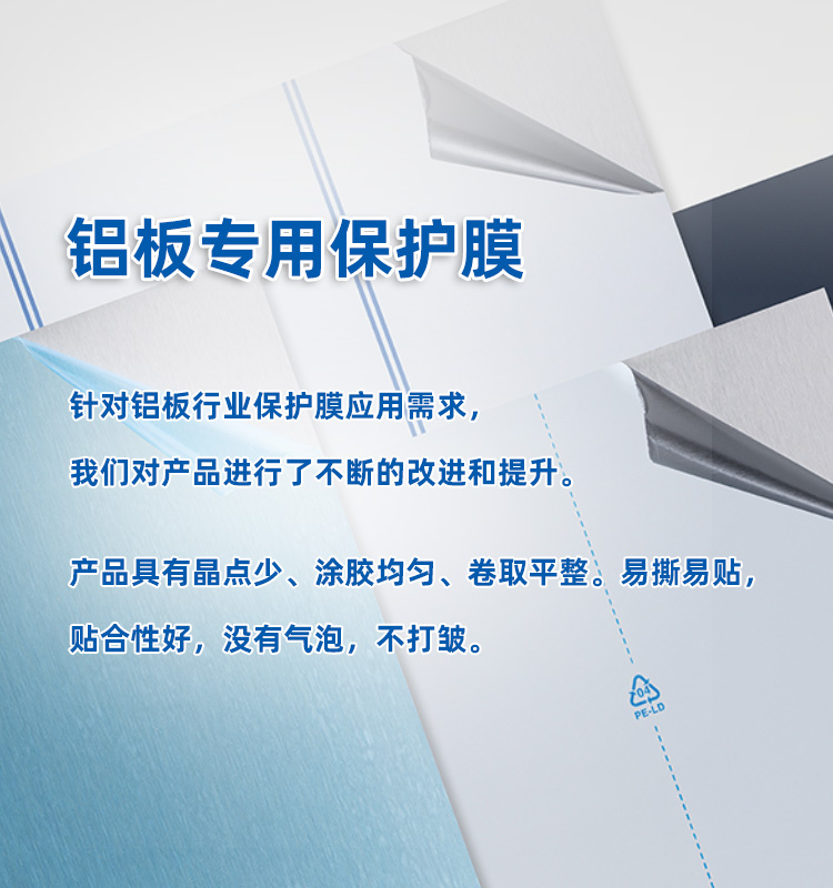 配合行業(yè)內(nèi)先進(jìn)的生產(chǎn)技術(shù)力量,為設(shè)施完備的保護(hù)膜生產(chǎn)基地,可巧妙地為您解決各種復(fù)雜的難題,為您的產(chǎn)品提供符合高水準(zhǔn)的保護(hù)。公司推行科學(xué)的管理模式,建立起有效的運(yùn)營(yíng)系統(tǒng),以研發(fā)制造為核心,打造表面保護(hù)的整體解決方案,產(chǎn)品應(yīng)用于彩鋼板、鋁材、不銹鋼、塑料、電子產(chǎn)品、家電用品、陶瓷、馬賽克、家具、玻璃、地毯以及各類建筑、裝飾材料等行業(yè),具有易撕易貼、膠面不轉(zhuǎn)移、剝離無(wú)殘膠等特點(diǎn),得到廣大客戶的一致好評(píng)。特別是在不銹鋼保護(hù)膜、鋁板保護(hù)膜領(lǐng)域不斷開(kāi)拓追尋,逐步成就核心技術(shù)優(yōu)勢(shì),市場(chǎng)占有率節(jié)節(jié)攀升。